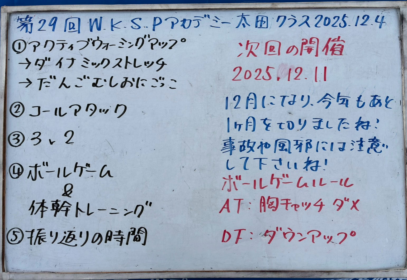 本日の太田クラスの練習メニューです。
