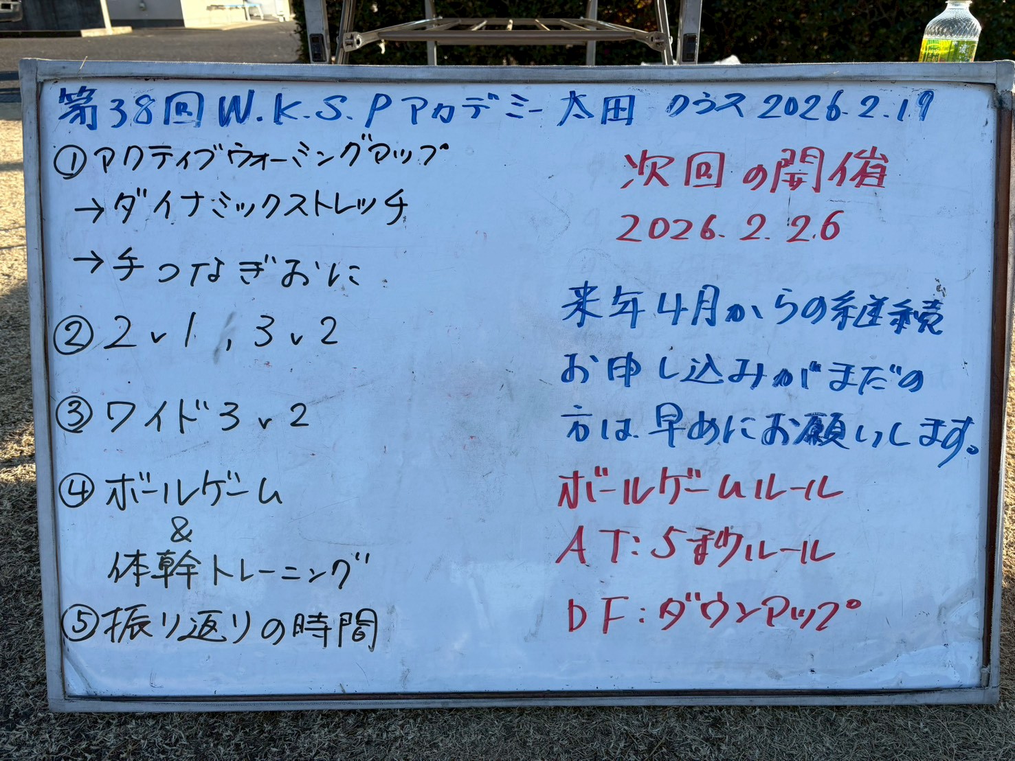 本日の太田クラスの練習メニューです。