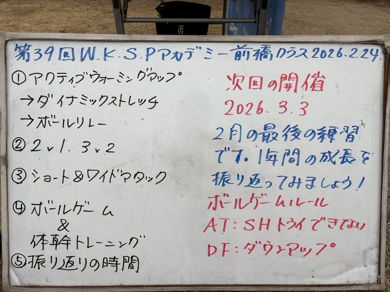本日の前橋クラスの練習メニューです。