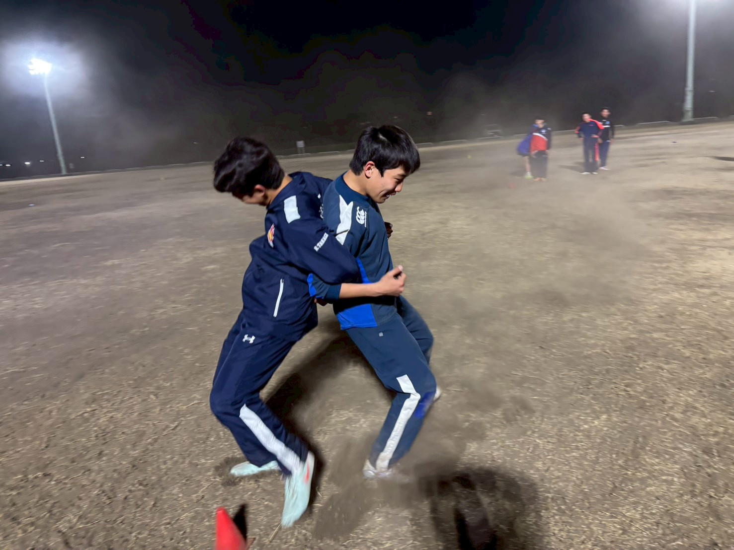 そして乾燥とグラウンドの芝がほとんどないおかげで、グラウンドの砂煙がすごいですね!